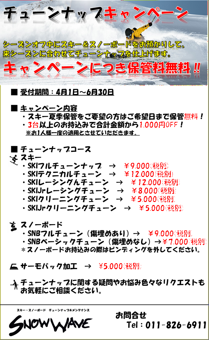 SNOW WAVEはスキー・スノーボードのチューンナップショップです。